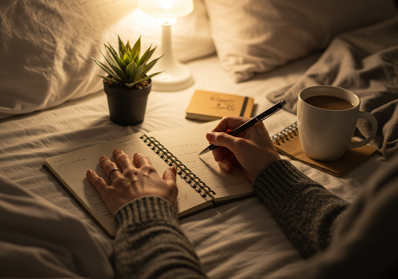 머릿속에 걱정이 가득하면 쉽게 잠들기 어렵죠. 하루 동안의 감정과 생각을 정리하는 감정 일기를 쓰면 마음이 가벼워지고 숙면에 도움이 됩니다.